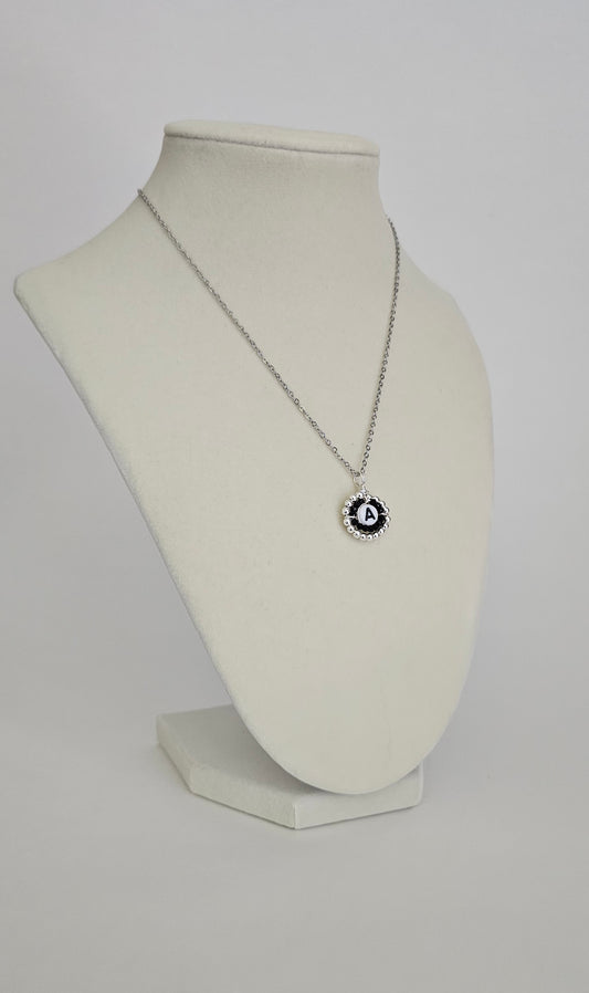 Letter charm necklace silver and black