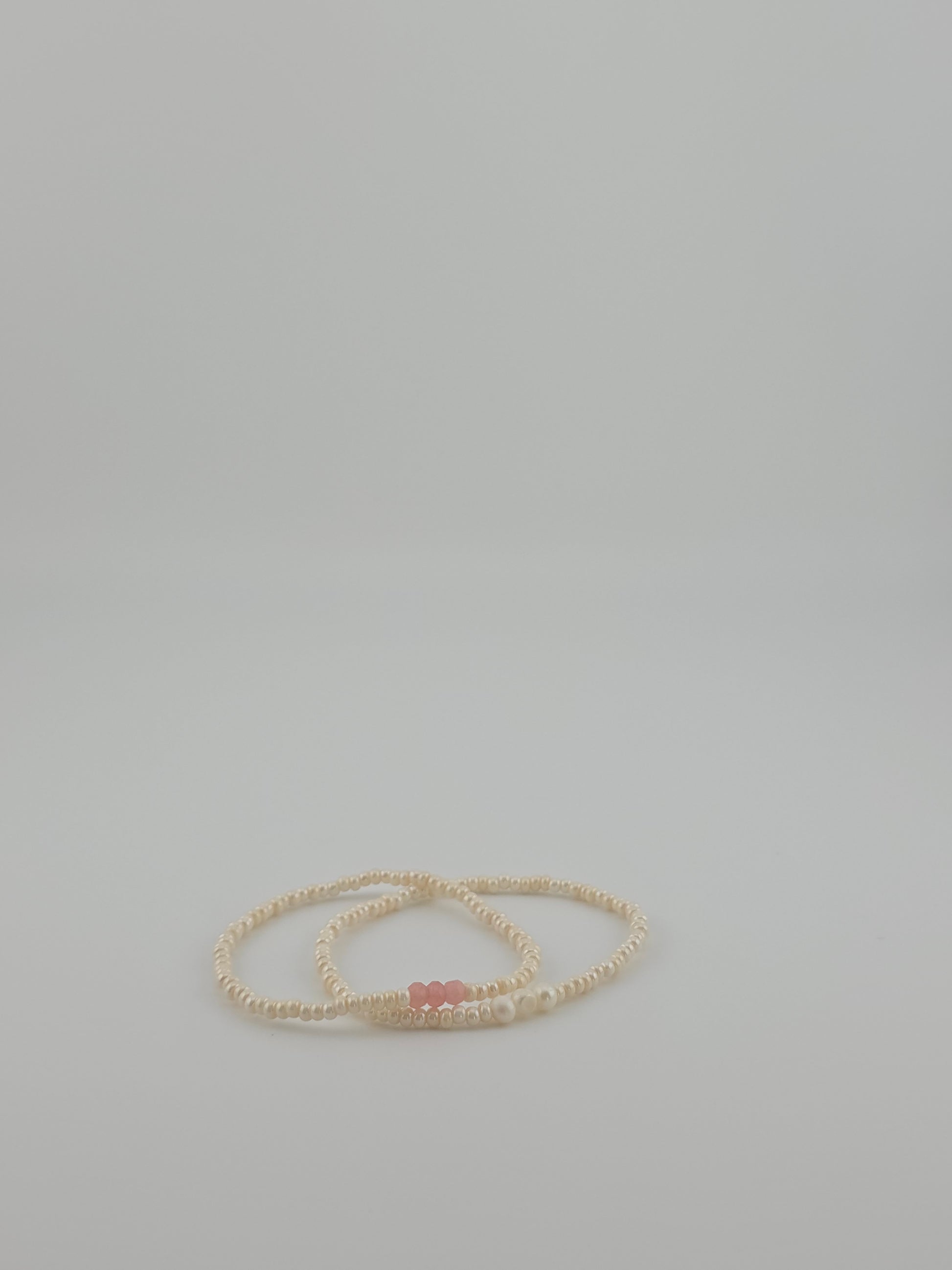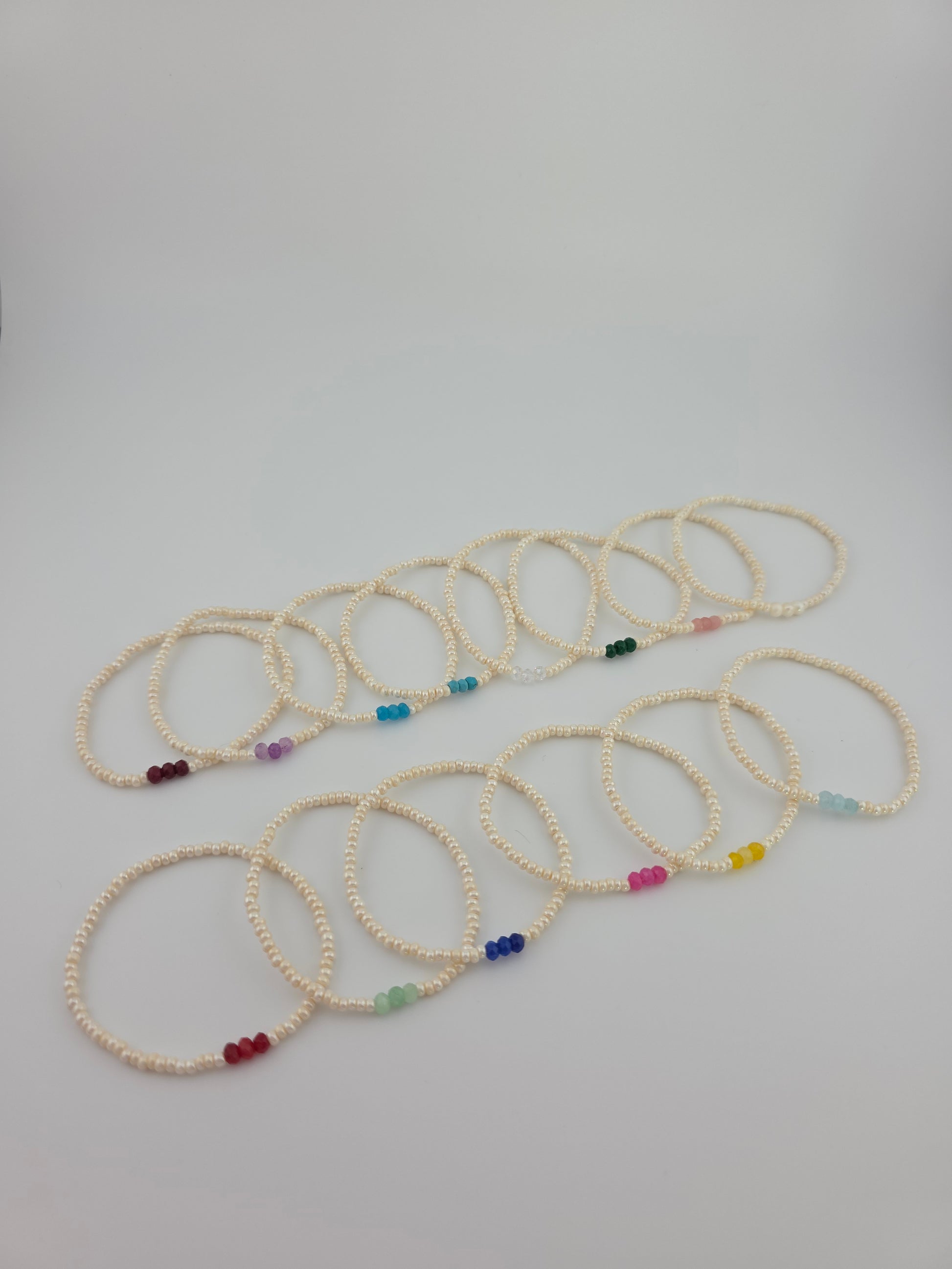 - Elastic Cord Bracelet with pearl seed beads and Crystal Beads