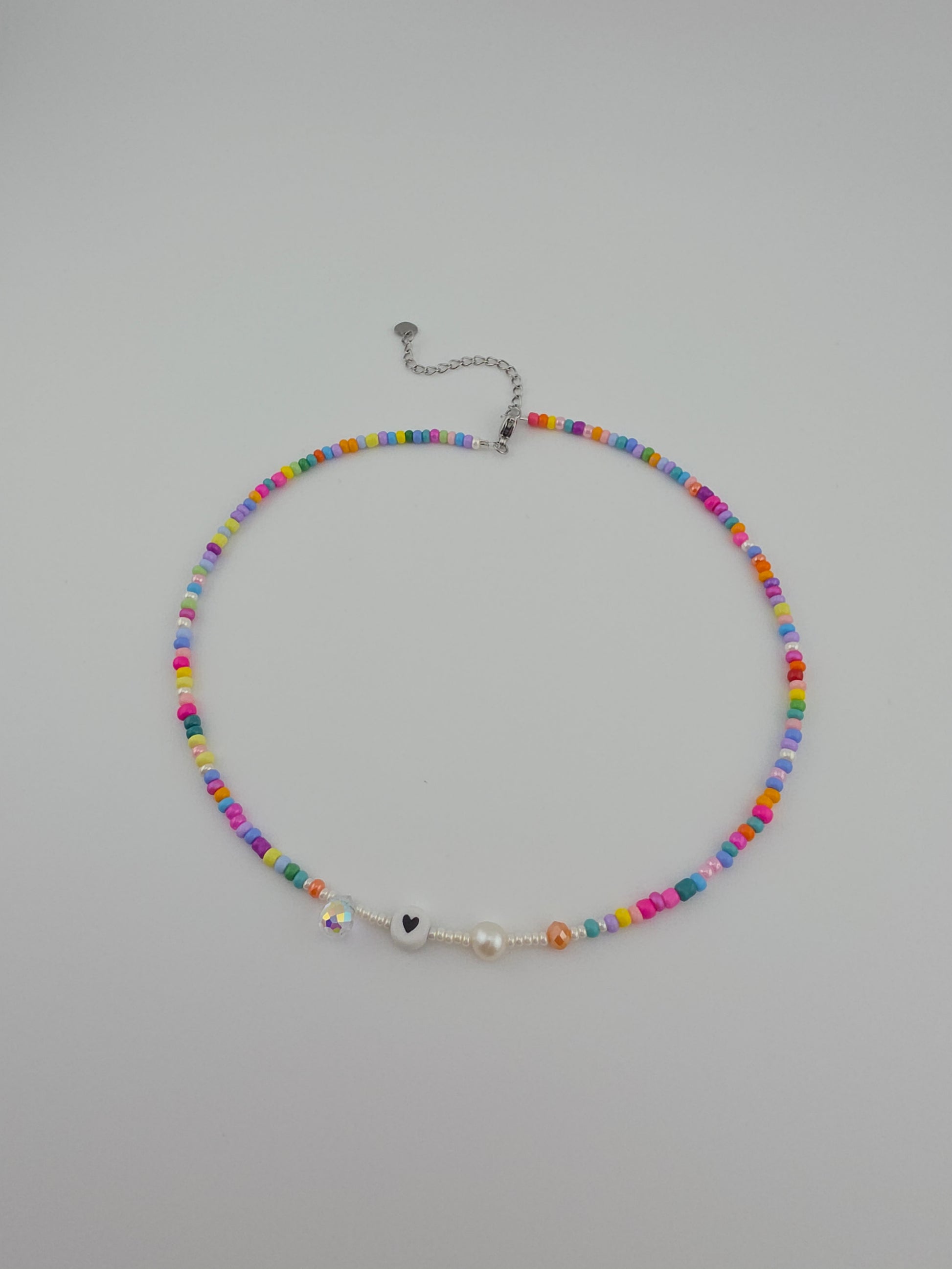 Rainbow Heart Seed Beads Choker